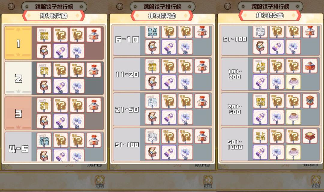 6、制作饺子获得积分除了可以消耗用于抽取宝贝外,累计积分还会自动参与排行榜排名,活动结束后获得排名奖励: