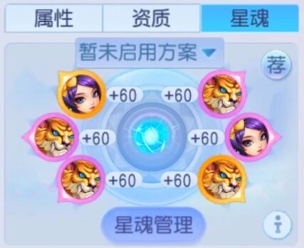 接下来我们来看星魂搭配。星魂分为属性和套装两部分,优先考虑物攻和力量,其次为体质和气血。以下是几个推荐套装: