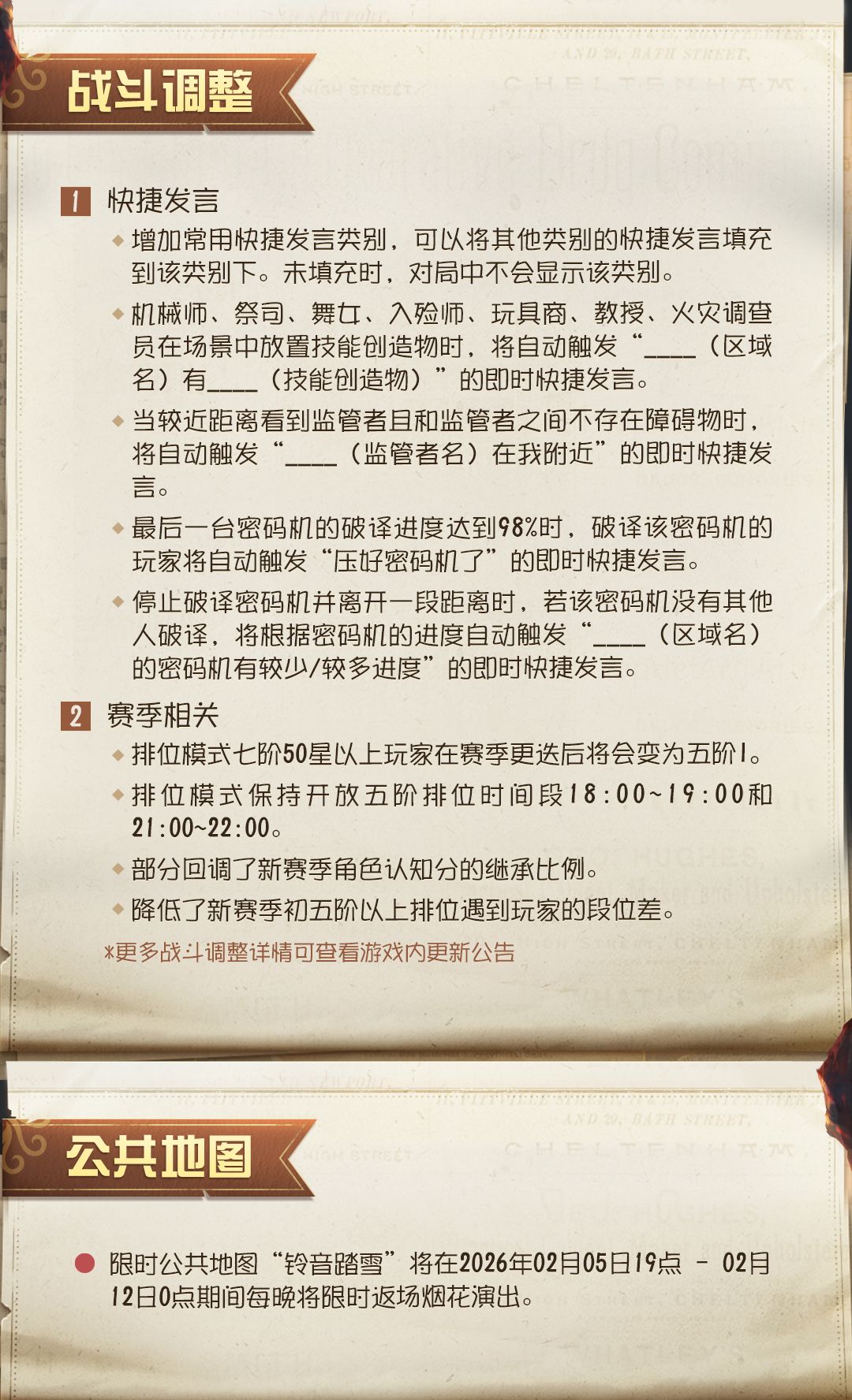 2026年2月5日维护公告划重点版本来啦! 第四十二赛季正式开启!全新【求生者】斗牛士上线