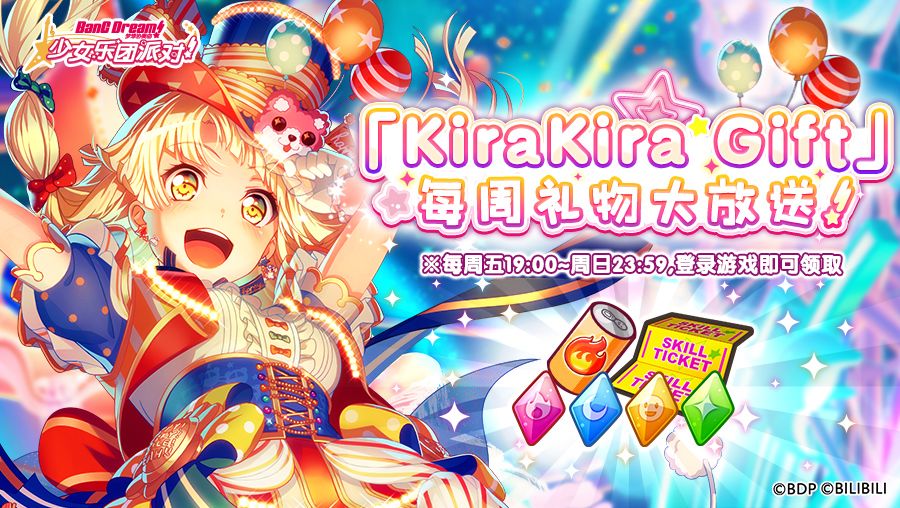 本周登录礼包「KiraKira Gift」现已发放!内含【小型Live Boost饮料×2、Mygo专用技能练习券x1、Powerful属性碎片(小)x50】,仅限2月6日19:00~2月8日23:59期间登录游戏领取,还请不要错过(〃'▽'〃)