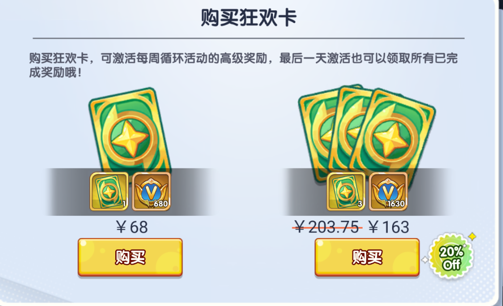 所以周卡绝对是这个游戏性价比最高,最好的礼包选择