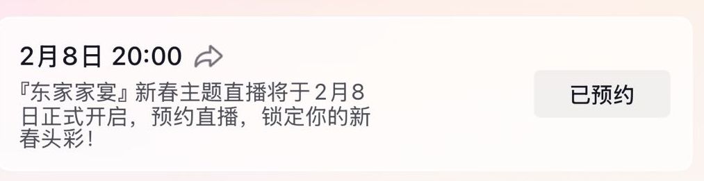 有奖活动:在评论区分享你的东家家宴新春直播预约截图(任意平台都可)并加上自己的水印,如下,小宝随机揪出5位东家送出30元京东卡!