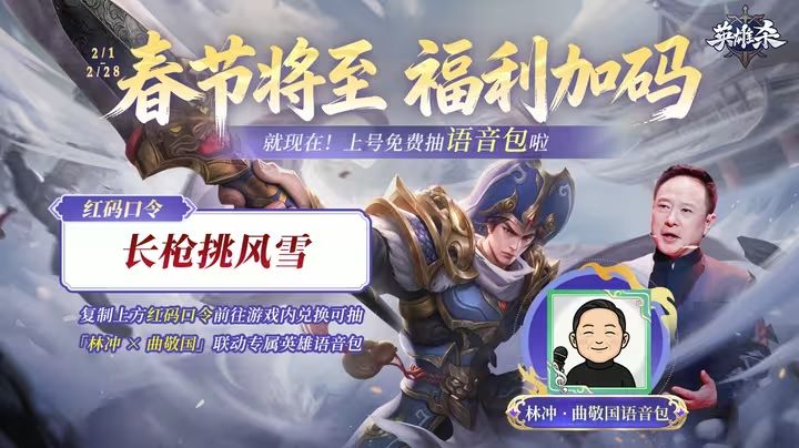 小师妹来送今天的英雄杀林冲与知名配音演员曲敬国福利 —「林冲×曲敬国联动」语音包啦~