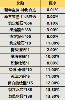 * 时之幻想转盘共有3份大奖和若干份其他奖励