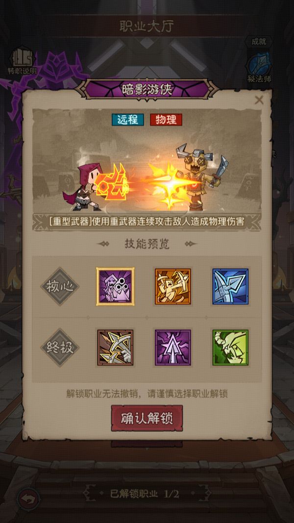 4. 在解锁职业的二次确认窗口中,可以预览对应职业的核心技能与终极技能。