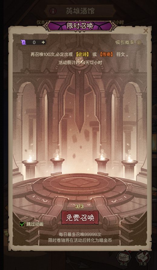 1. 限时召唤只能使用活动限定得限时符文卷轴。