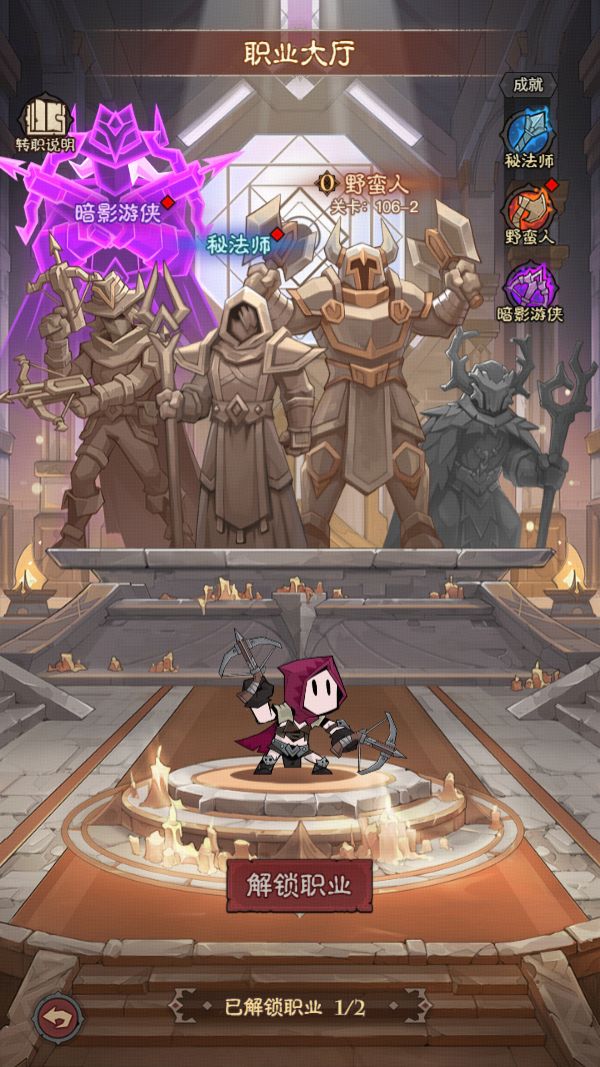 2. 转职大厅解锁后,可以从未解锁的职业中选择一个进行解锁。