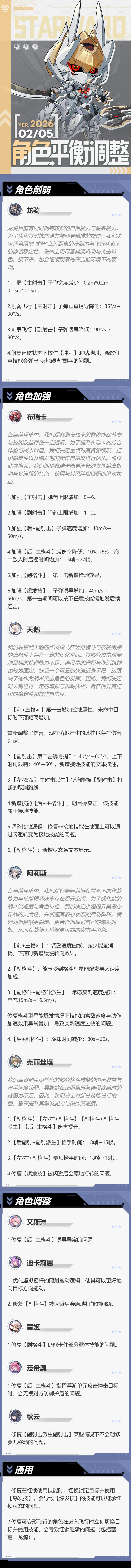 各位团长好,为了让团长们有更好的游戏体验,我们决定在2月5日游戏更新后对部分角色进行平衡调整,改动如下: