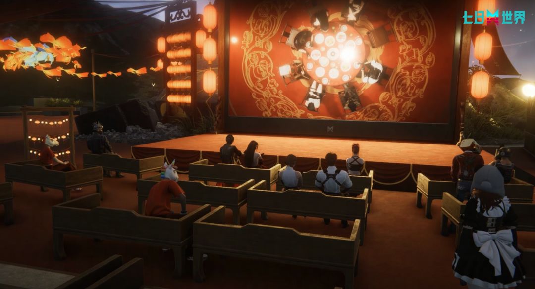 新春岛中心广场的巨幕已点亮,《七日世界》特色视频将在此循环上映。