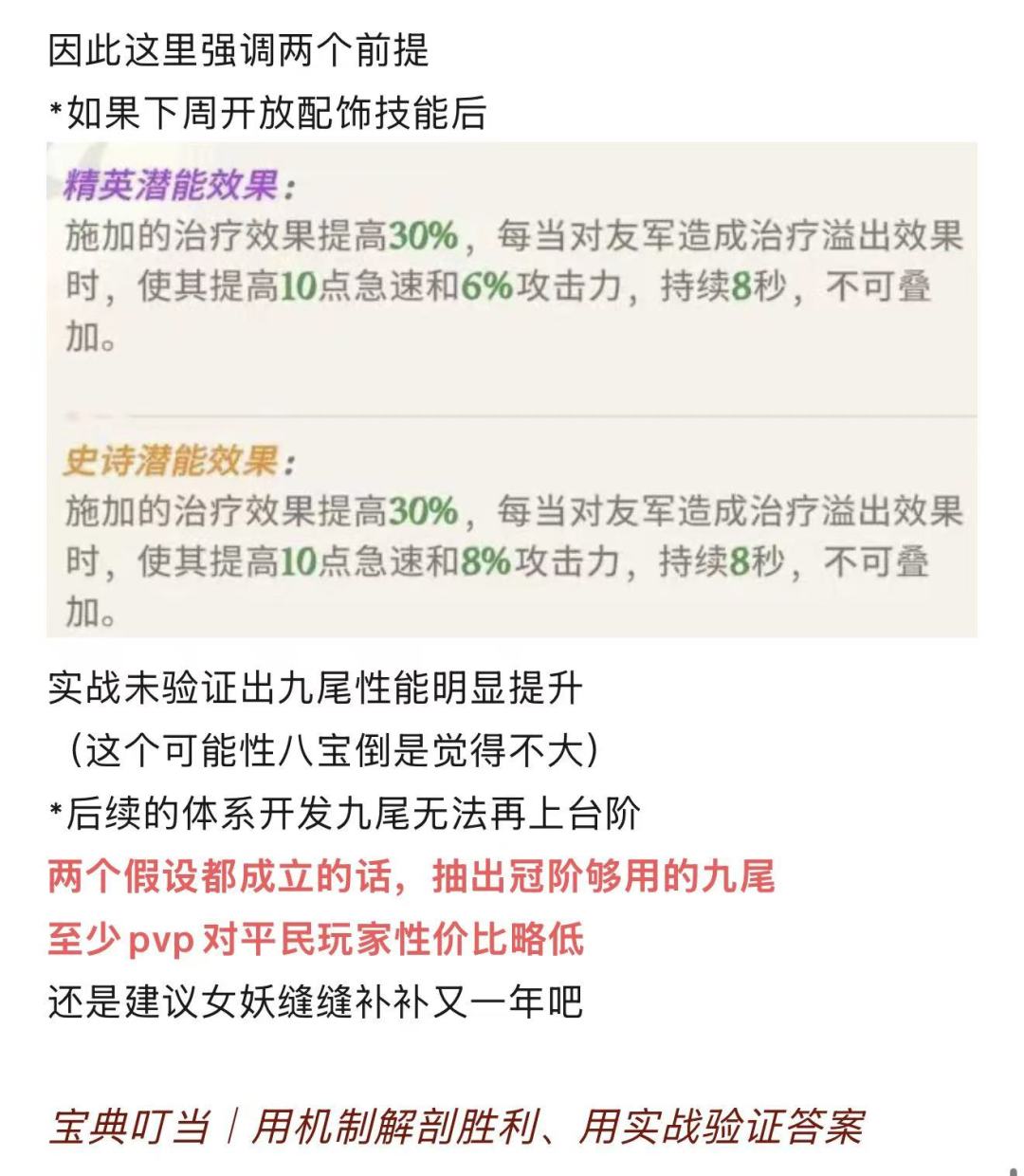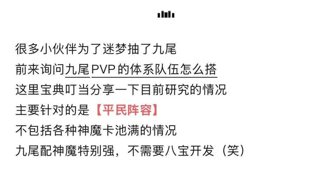 【宝典叮当】九尾平民阵容开发现状