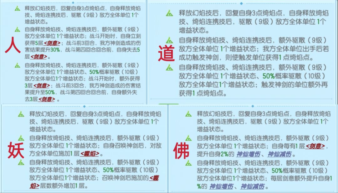 新增属性神仙增/减伤,一个新的伤害计算乘区,目前含金量与伤害结果同级,这个属性未来只会在神仙上少量投放,现在只有佛族红莲有,当然这并不代表佛族红莲比其他三族强,数值不算高。