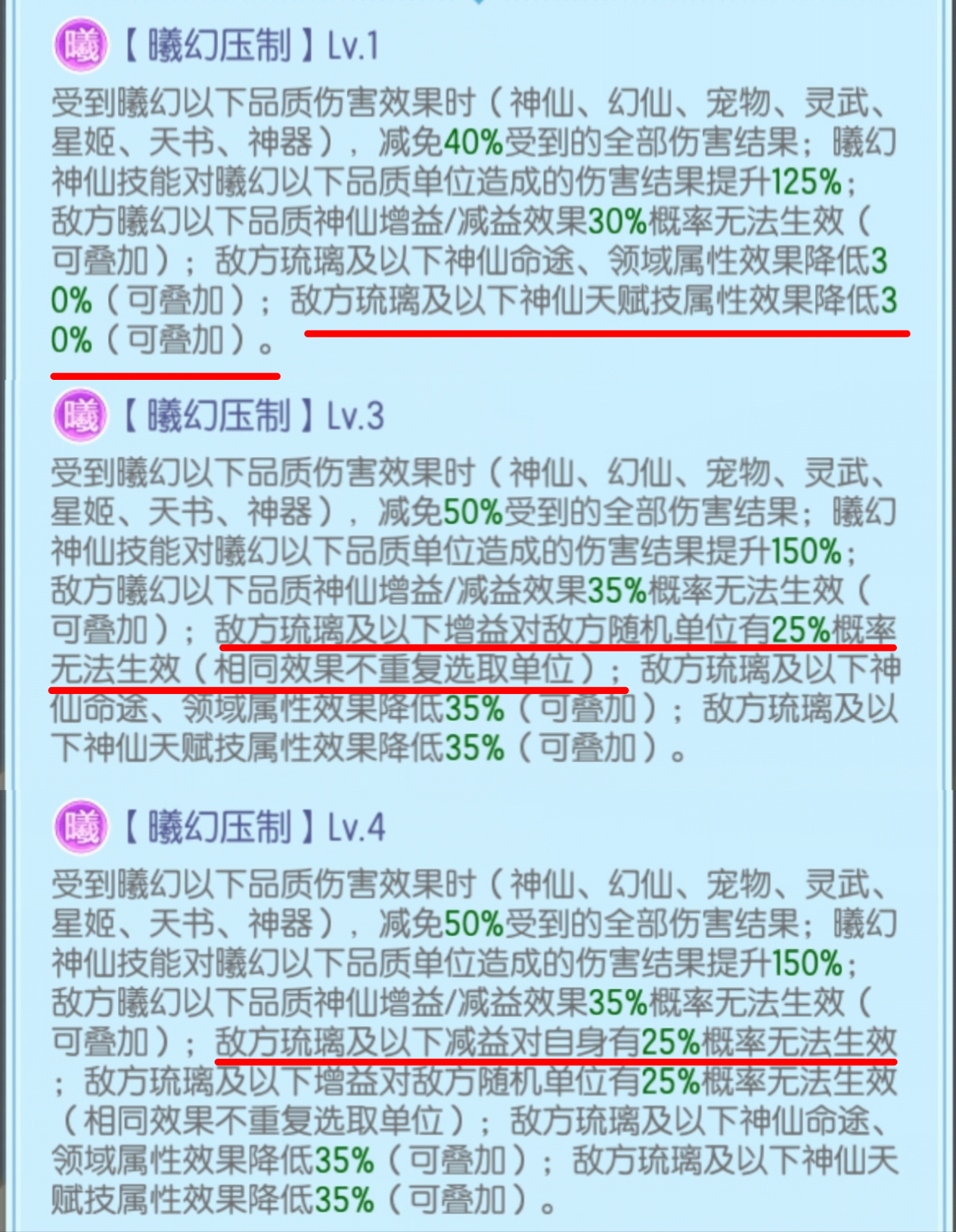 1星多出来的效果是首次在神仙上出现,不过只要对手有两个以上曦幻神仙,这条多出来的压制就没啥用。