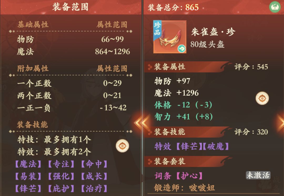 80级易装法攻正负武器,496的属性高出70级武器36法攻,80易装还增加了宝石收益,对比70级满法攻基础属性武器,足足高出了52点法攻,加上法攻特效,已经可以想象大佬手执此扇在79叱咤风云了。