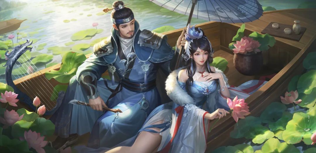 素手轻摇手鼓,叮咚脆响随荷风漫开
