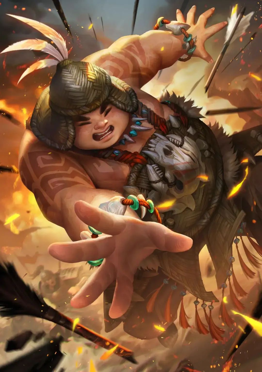 【钝勇】你对其他角色造成伤害时若你的体力上限不为全场唯一最低,则你也受到同等伤害;当场上有角色进入濒死时你摸X张牌且你本回合的牌无距离次数限制(X为濒死角色的体力上限)。