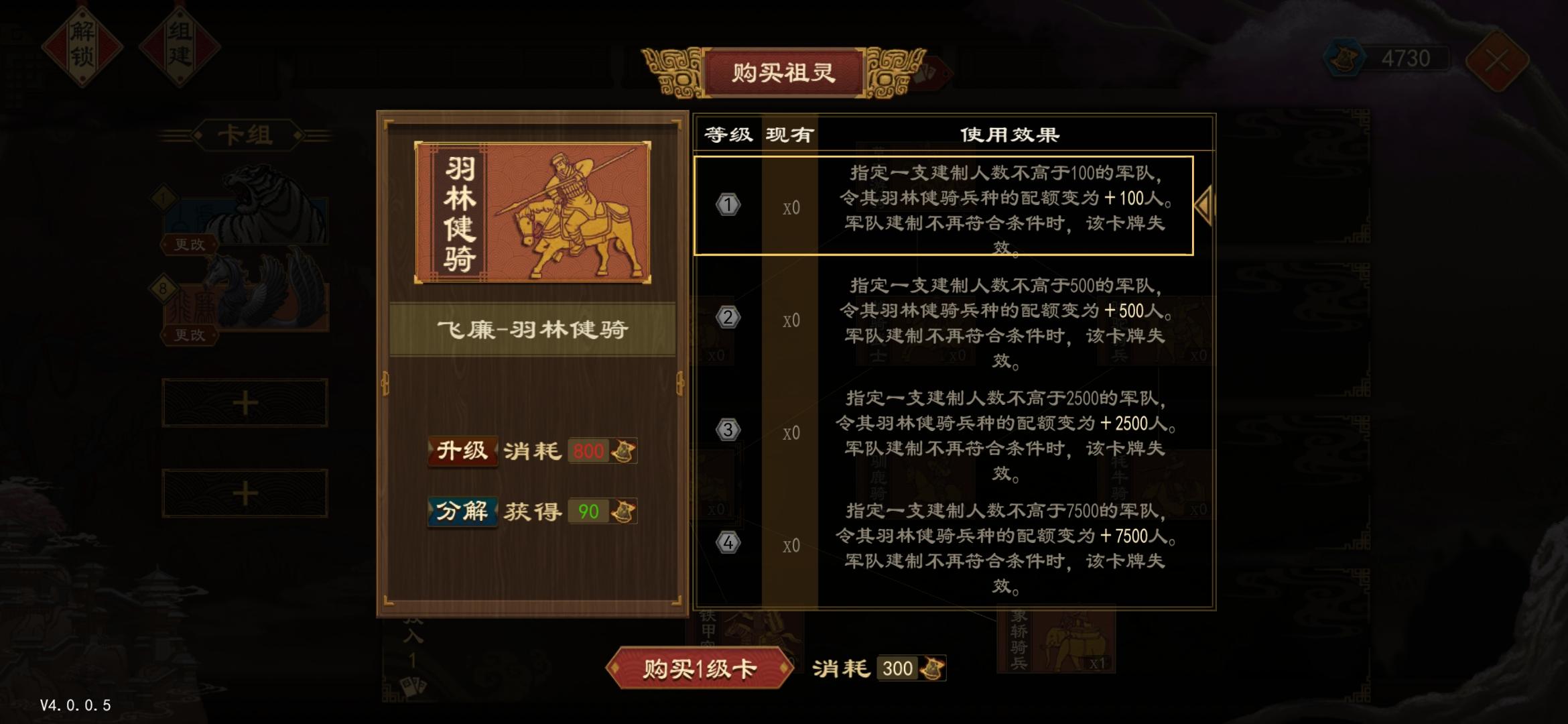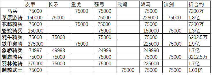 优点,实战能力仅比羽林低,真正的数值怪,名字帅气(绷不住了)。优点说完了就到缺点了,铁骑缺点是全方位的,作为一个骑兵,130的行军速度还比不上普通兵种,闹麻了,实战表现不如比自己便宜的羽林,装备还是全游戏最贵最多的。19900+4,对比12600+3的羽林,完败,只能说拉胯。