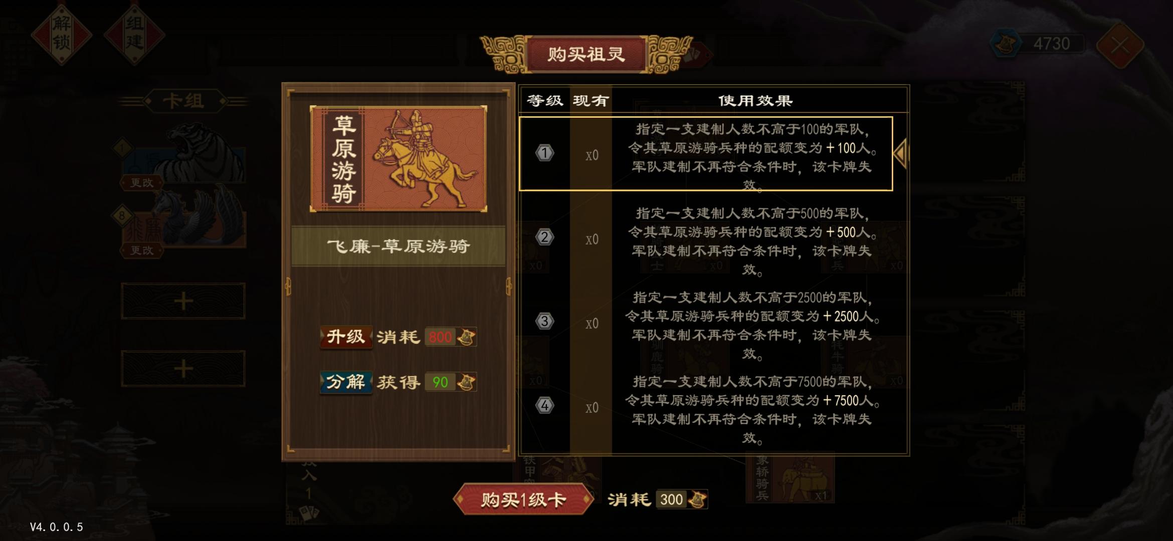 12600+3,优点全游戏第一快的速度,以及高效的虐菜效率,可以说发挥了飞廉兵种的特色,但是缺点十分致命,吃装备多,抗压能力不行,实战能力的缺失导致他并不是十分推荐的兵种。他适合虐菜式的战斗,通过自己的高速快速攻城掠地,战斗表现趋于两极分化,有可能对面几十万大军摸都摸不到你就死了,0战损轻松拿下。也有可能被对面特种兵突脸直接翻车。不过就目前你游ai这个环境,其实基本上都是虐菜。适合对高速度有极高追求,同时不是很在意损失和遗尘花费的玩家。