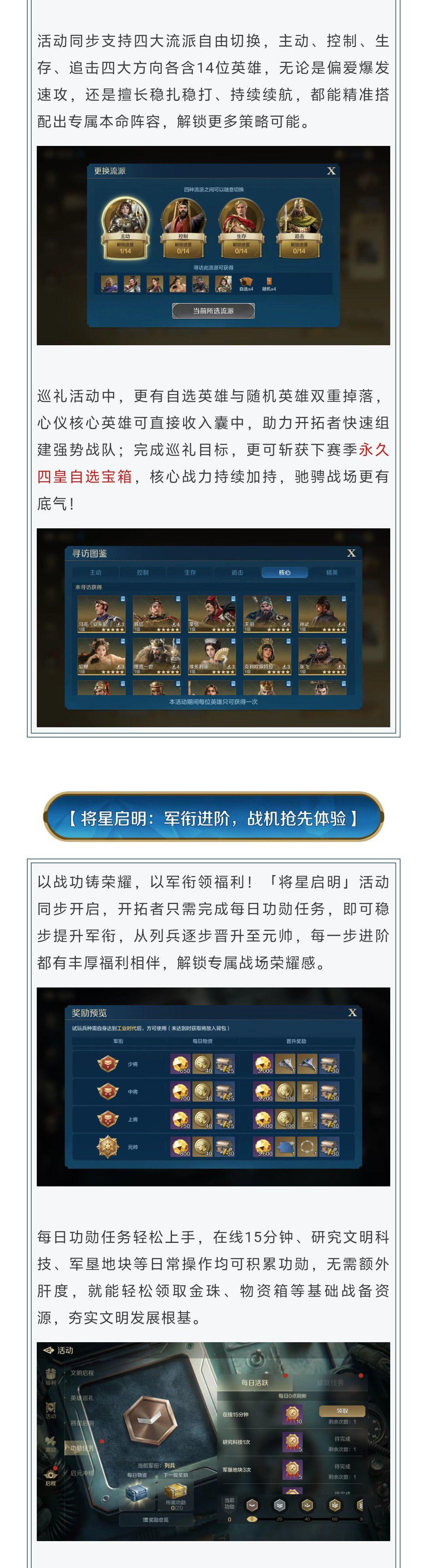 诸位开拓者,文明新程已启,战场烽火已燃,2月7日登陆全卡畅玩服,参与「文明启程」活动,以全卡阵容为刃,以策略布局为谋,开拓属于你的文明版图,解锁属于你的战场荣耀吧!