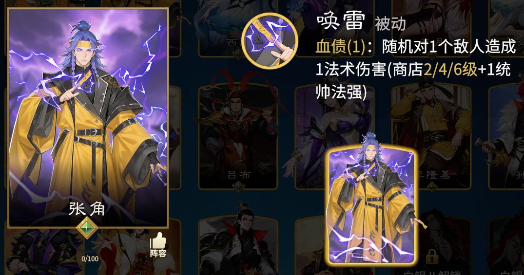 ②电母:初期法伤辅助,光环类部将需要战场,不建议花费资源特意购买,不过张角前期拿来搭配小妖过渡不错。