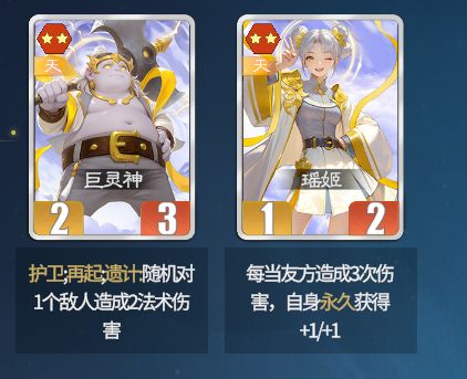 ①巨灵神:前期护卫部将。巨灵神是和虎豹骑一样的战略卡牌,至少两次护卫,后期也可以作为对策卡。