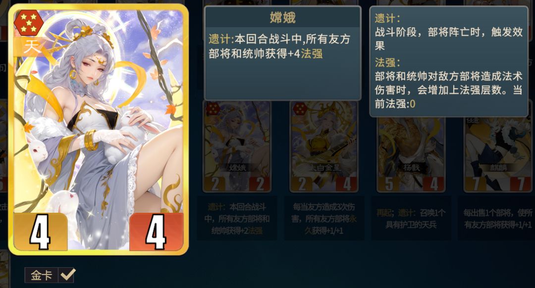 托塔天王搭配朱雀,可以让所有部将具备遗计,嫦娥+饕餮可以给所有部将加持法强。