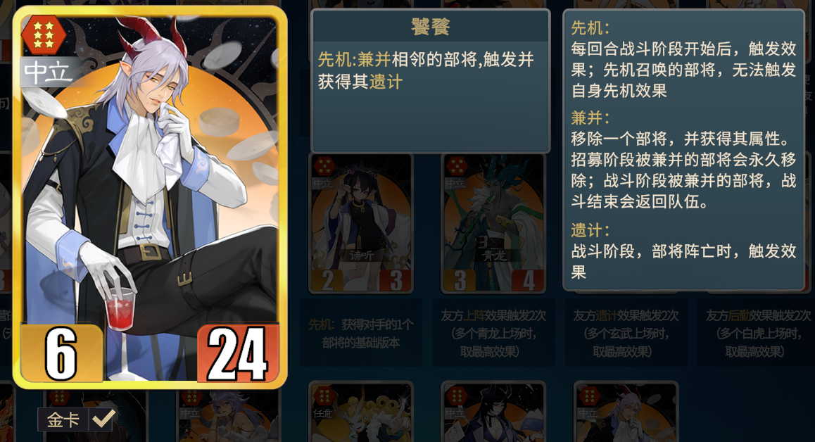 这里要注意,如果让饕餮兼并托塔天王,一定要把托塔天王放在前面!!