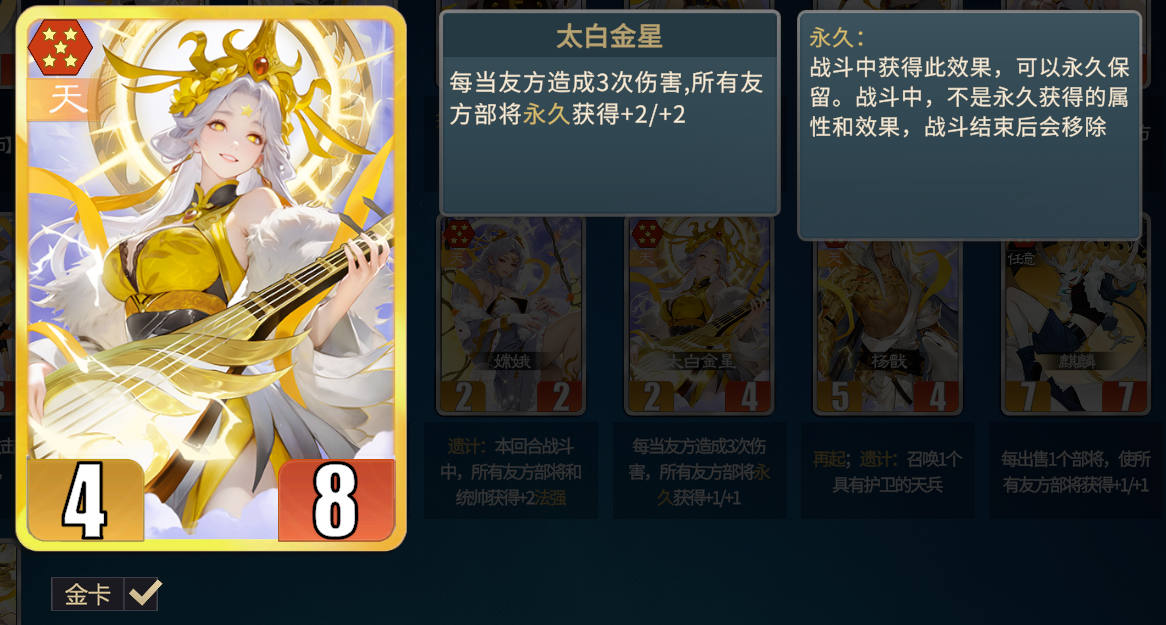 通常情况下,在决战前的发育阶段,天庭会在正常阵容里塞一张太白金星,提升整体属性以增加容错率。