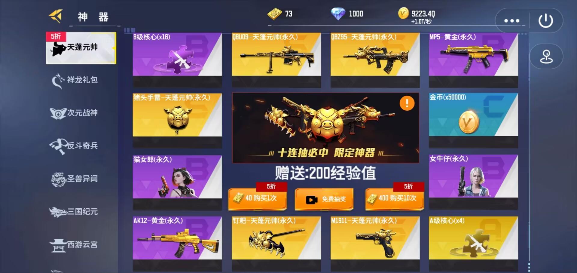 七喜在这里要向大家讲一个误区,用视频抽奖得到的武器只能获取相应的碎片,并不能抽取永久,每抽中一次武器获得2碎片,攒够100碎片即可合成永久武器!此外,视频抽到的角色也只能体验1小时。用点券购买抽中即可获得永久,甚至只要10连抽必中一把永久武器,也就是说最多只需花2000点券即可获得全套神器。使用点券抽奖,抽中的角色即可永久获得!