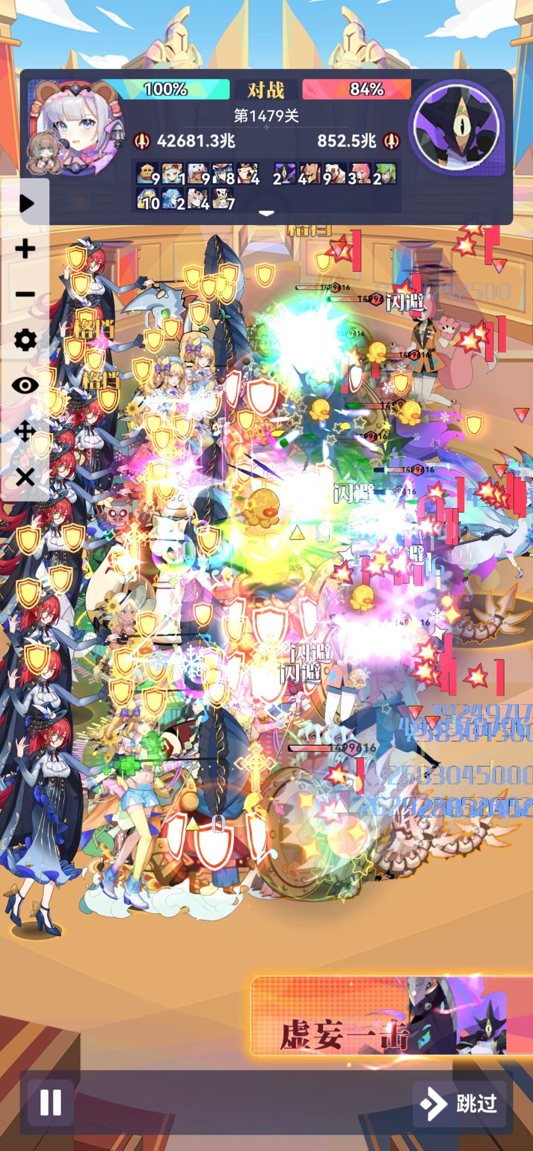 赶在新年前通关了,芝打图还是强,不然不知道还得熬多久,光殿550,伙伴2450,装备2990,27.9兆,主用1050那套,卡关就用倒数第二套,1414过完到通关就用了一天。1497看黑大帅的攻略,新增的最后一套,感谢群里的大佬指导及论坛的大神哈。(ps附最后一图我觉得战力最夸张的一关)