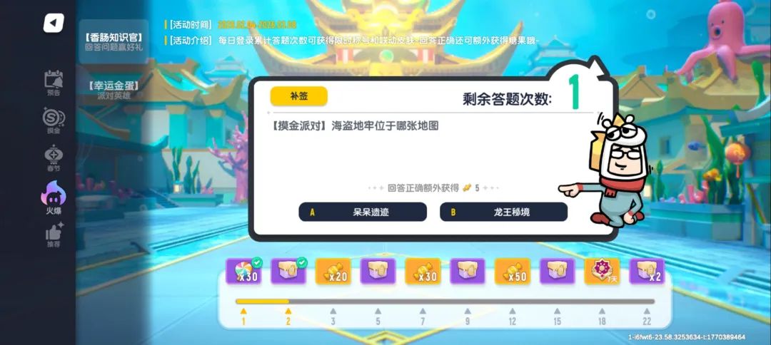 分析:龙宫位于龙王秘境,呆呆遗迹是海岛地牢哦
