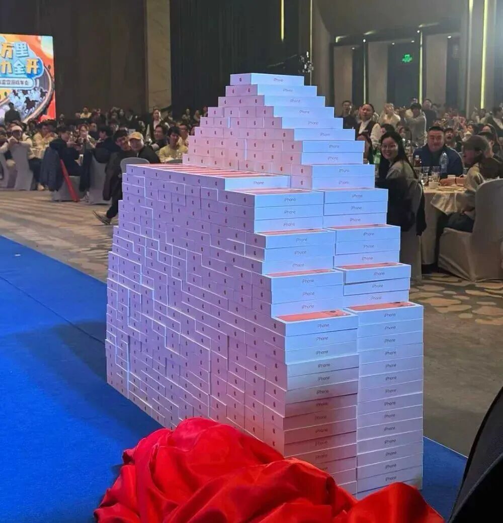 有员工晒出年会现场照片,已iPhone 17的盒子垒起来有人高。