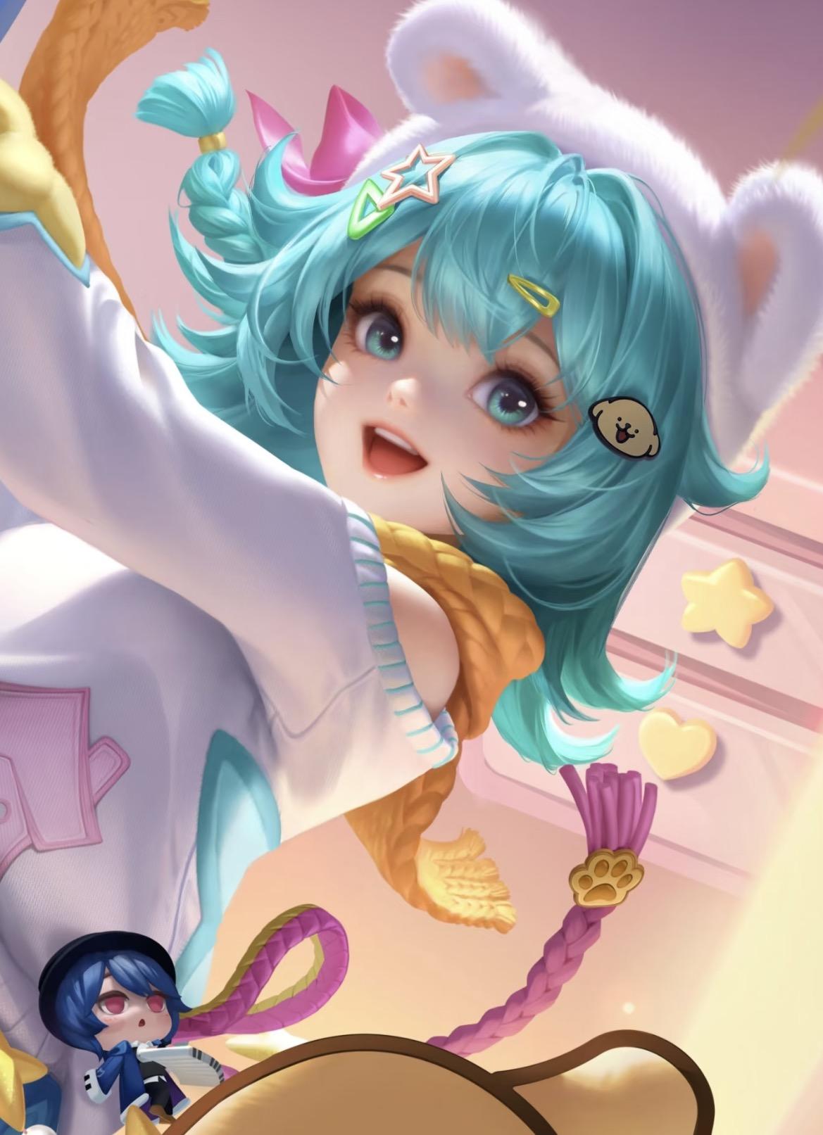要不是仔细看了看,谁能想到这是朵莉亚啊?一个辅助美人鱼,一个中单小萝莉,现在穿得跟同系列“萌系姐妹装”一样。尤其是那个色调和画风,跟之前火爆的线条小狗皮肤相似度高得离谱,放一起简直就是消消乐配对成功。