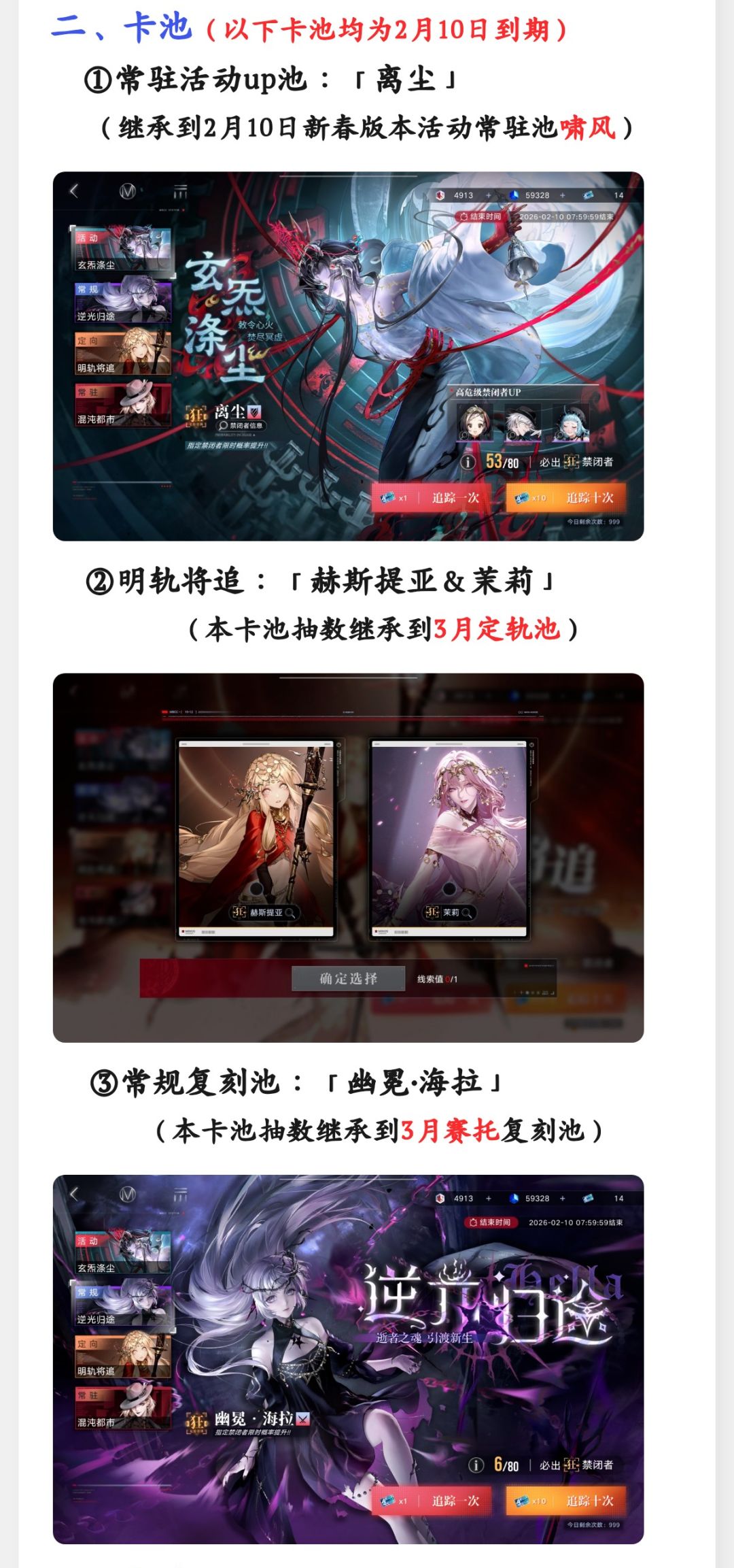 【2月5日】无期迷途活动临期提醒