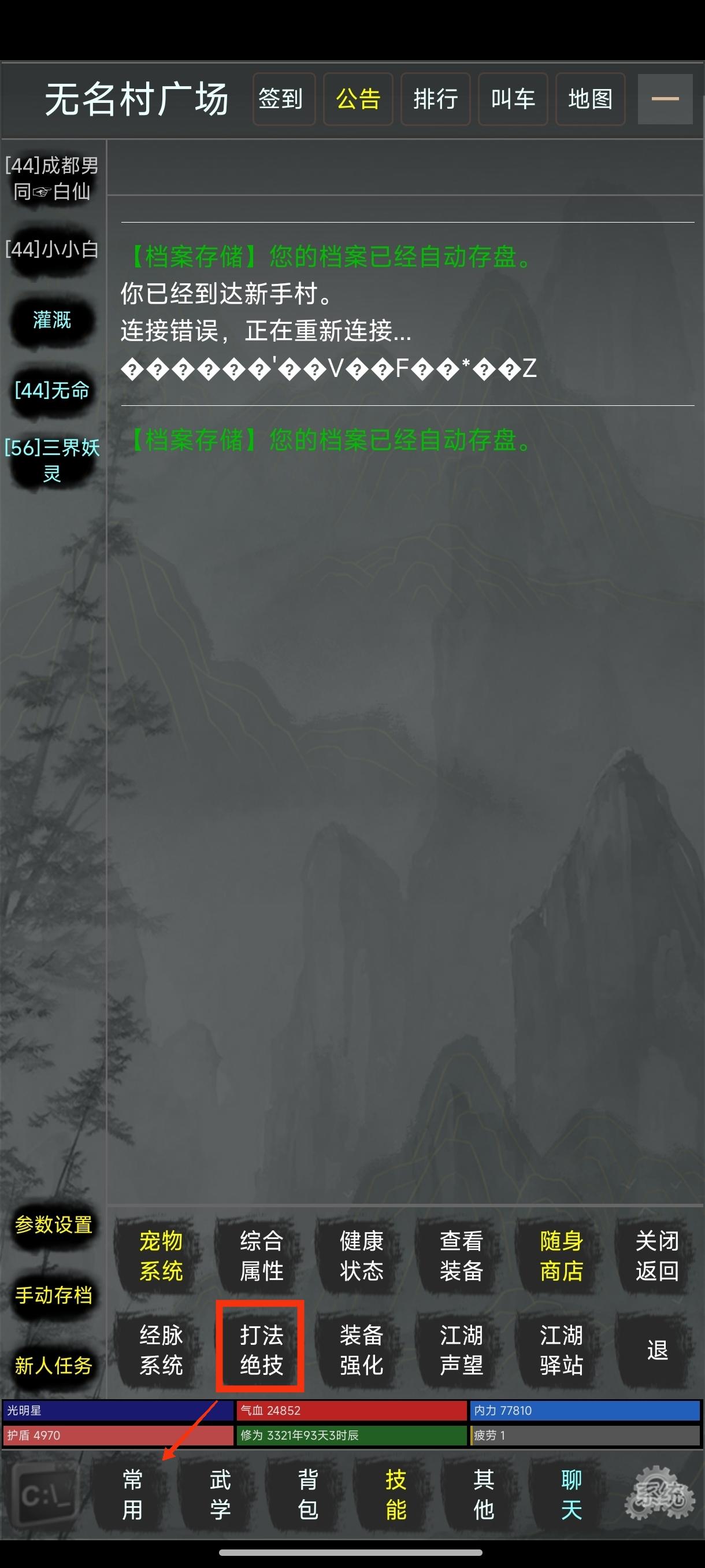进入游戏后,我们来到了无名村广场,梦开始的地方。