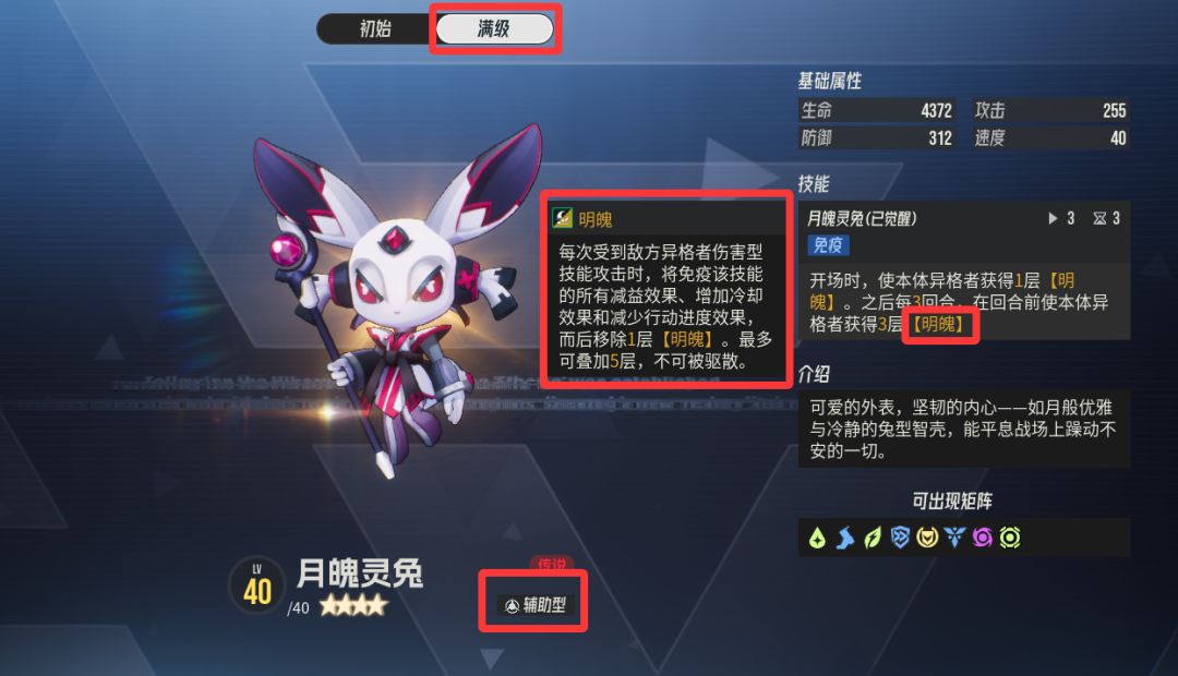 🌟:相当于开场自带一层【戍卫】的免疫效果,缺点,受到任何伤害类型的攻击,【明魄】的效果就会消失,而后进入3回合的CD。