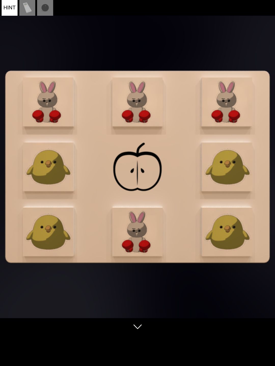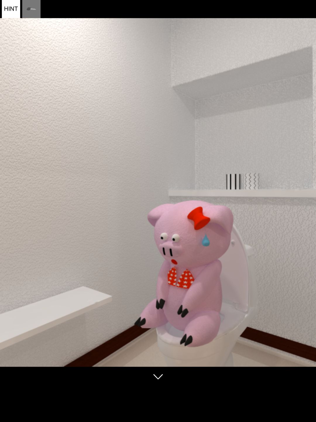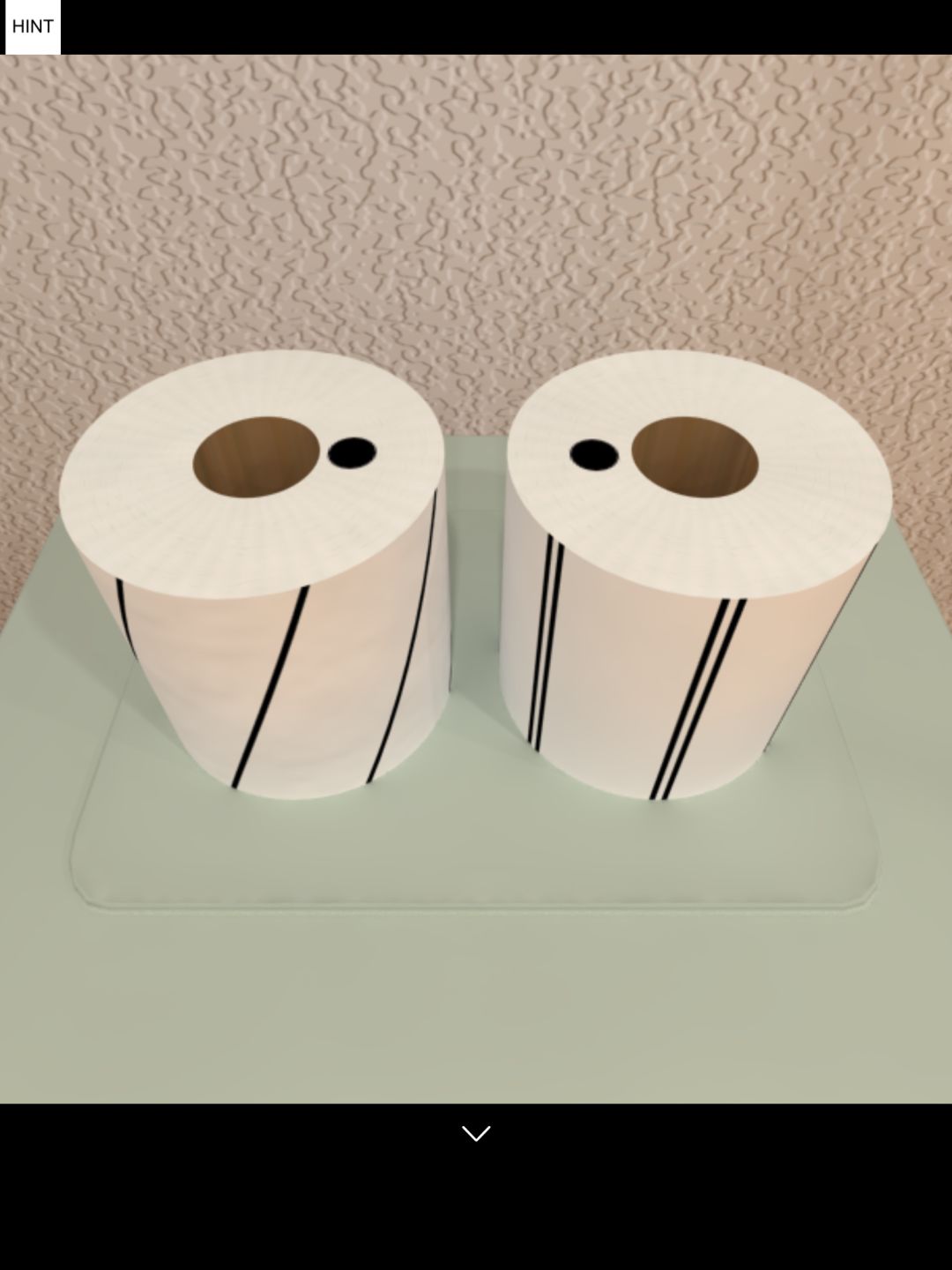 12、用硬币开启【欢迎区】左边那扇门,解锁新的场景【卫生间】。拿取左边横板上的钥匙,用钥匙打开上锁的盒子,获得一颗苹果。将苹果放到【办公区】的盘子上,卫生间里的小猪就跑回来了,可以回到【卫生间】看到厕纸上的图案。