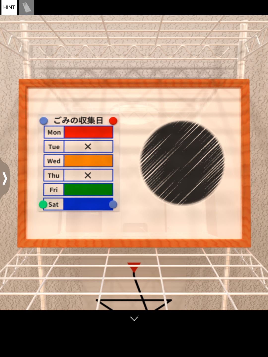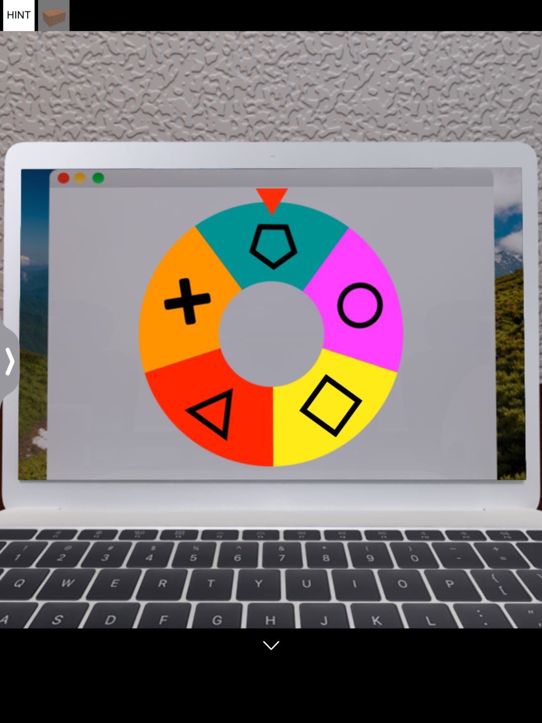 8、电脑解锁后屏幕上显示一个转盘,通过【白板区】白板下面的指示可得顺序为五角形➡️正方形➡️黑叉➡️圆形➡️三角形,这个顺序即为【水池区】右下角抽屉的答案,得到一块板擦。