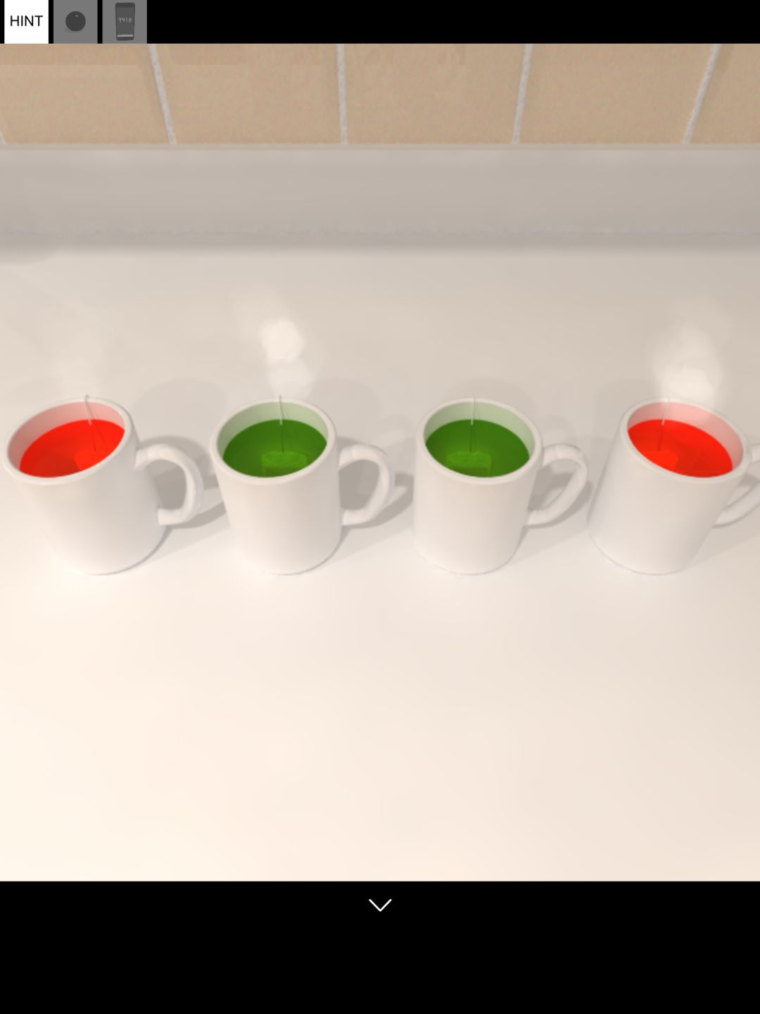 6、进入【办公区】,拿取右下角的水壶。中间笔记本上的数字是82536,对应的是【欢迎区】柜子第二层的密码,得到一节电池。两个笔记本电脑上的图案对应【老虎区】黑色柜子上的图案(注意正反),得到一个上锁的盒子。顺手用水壶给旁边桌子上的四个杯子倒水,水的颜色顺序为红绿绿红。