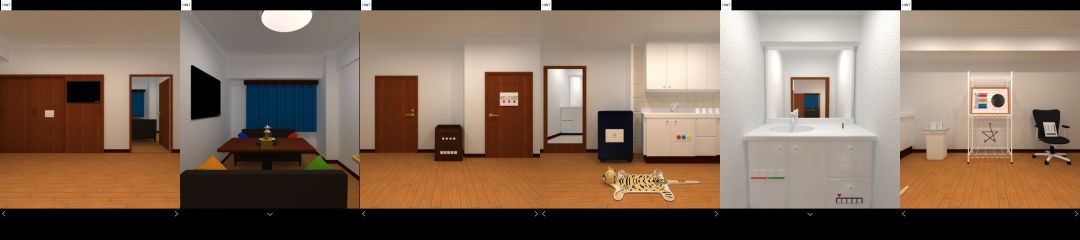 开始游戏后,可以探索的目前有6个场景,从左至右为【电视区】【休闲区】【欢迎区】【老虎区】【水池区】【白板区】