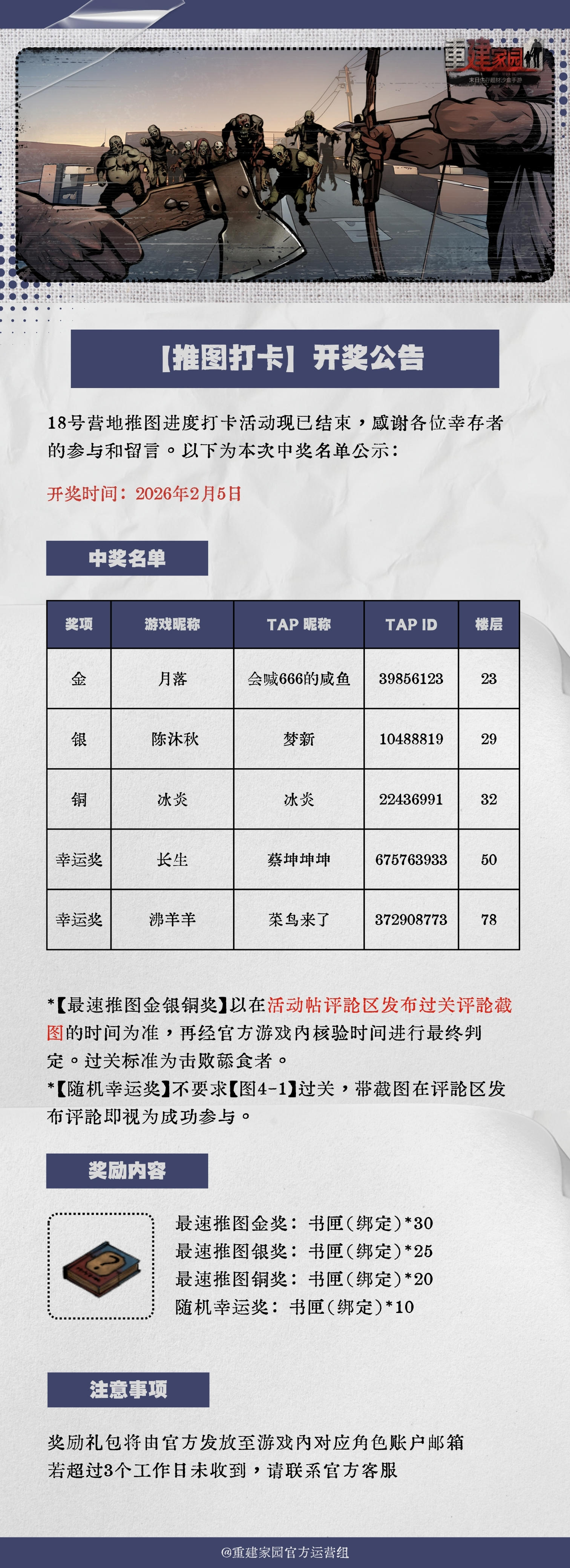 开奖公告 | 18号营地推图打卡开奖