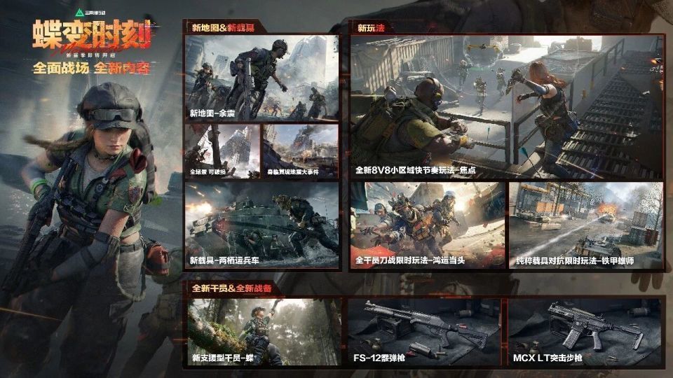 一、新干员"蝶":支援位的机制破壁 "蝶"的核心定位是首位兼具战场支援与直接作战能力的复合角色,这个设计打破了传统FPS支援位的工具人困境。