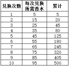 - 通过原色花的香水兑换梦币,每次可兑换1w梦币,最多兑换10次,再兑换需求香水量增加,具体如下: