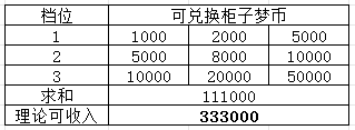 - 一共有三挡展示柜可兑换(每档的各梦币规格的柜子都可兑换3次)