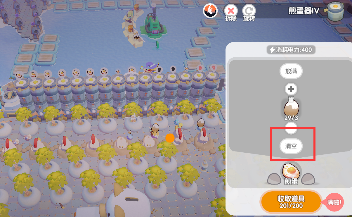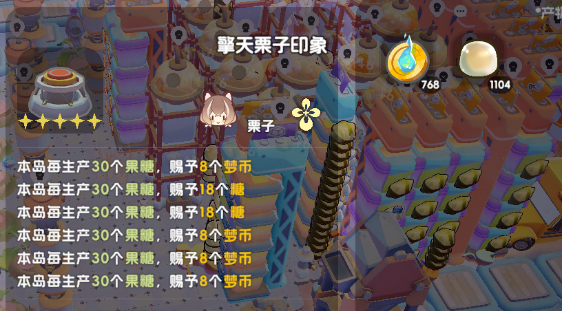 - 进阶:主线开到鸡岛、沙岛,发现要造压力物品导致压力很快爆棚,不能挂机,可以考虑把所有产线都集成到沙岛、渔岛,并放最高级的三个猫娘,这样聚会可以降低更多压力,收租也可以更高一点。