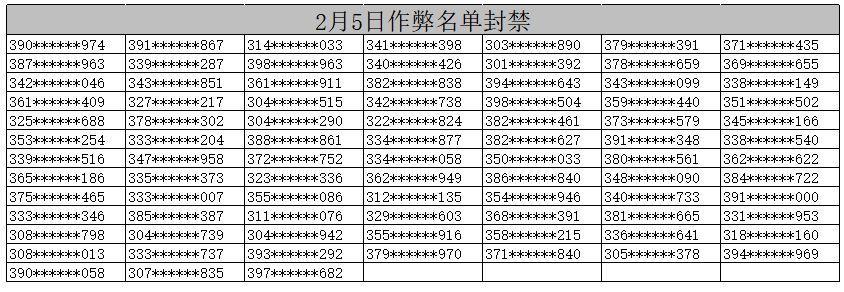 目前我们发现部分帐号的不当行为已违反游戏的使用条款,使用非法工具修改游戏数据或使用非法手段获取重要游戏道具,故已对这些账号进行封禁处理。现将部分账号公示如下:
