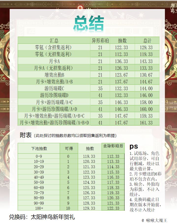 ④兑换码截止日期在版本开始前,故不计入统计