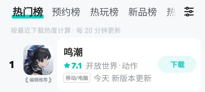 【快讯】鸣潮3.1版本今日登顶Tap热门榜