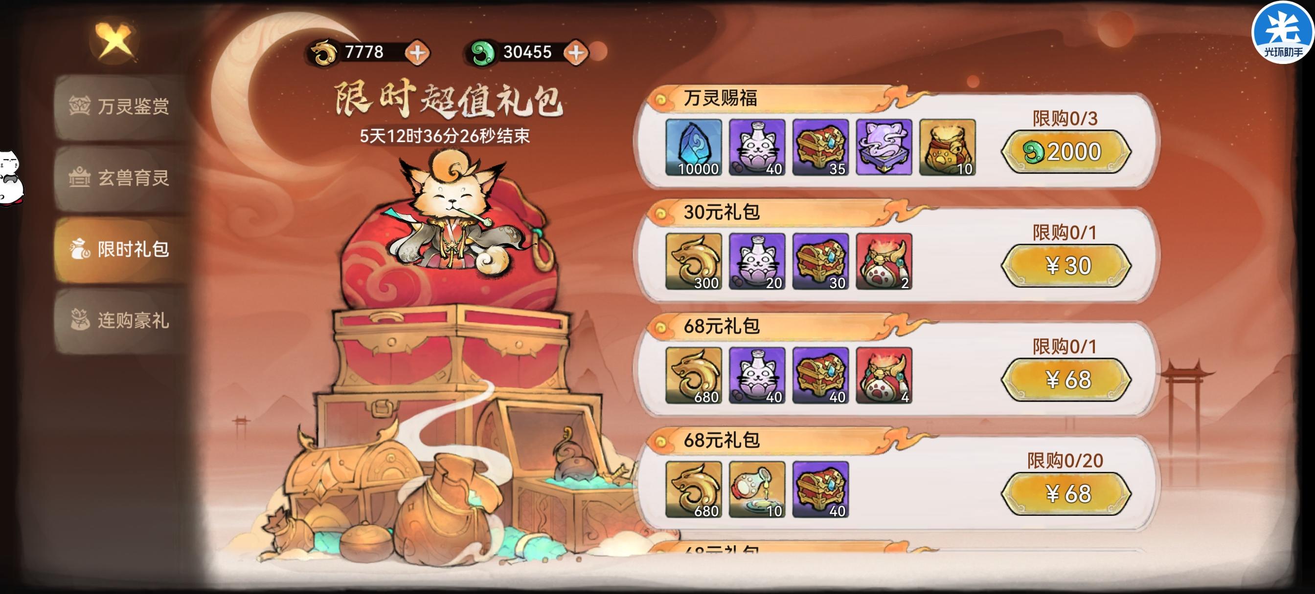 3. 灵兽商店:可用兽魂晶兑换各种珍稀道具,包括太初育灵露、饲灵丹方、灵兽技能书等。建议优先兑换兽诀自选箱(永久限购35个)、太初育灵露(每周限购2个)、五行精魄自选箱(每周限购50个)。