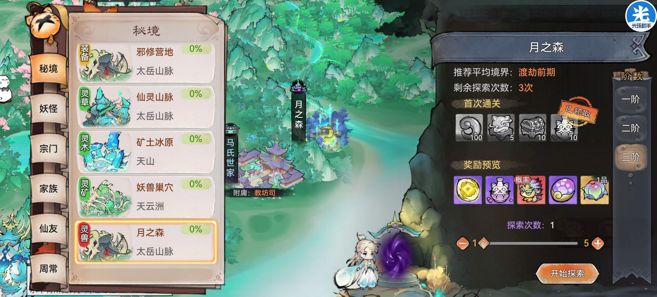 2. 灵兽秘境探索:每日可获得3次探索机会,探索可获得灵兽、饲灵丹、兽魂晶等奖励,秘境等阶越高,奖励品阶越高 。这是获取高品质灵兽和培养资源的核心途径,建议屯次数等卡皮巴拉联动再集中探索。