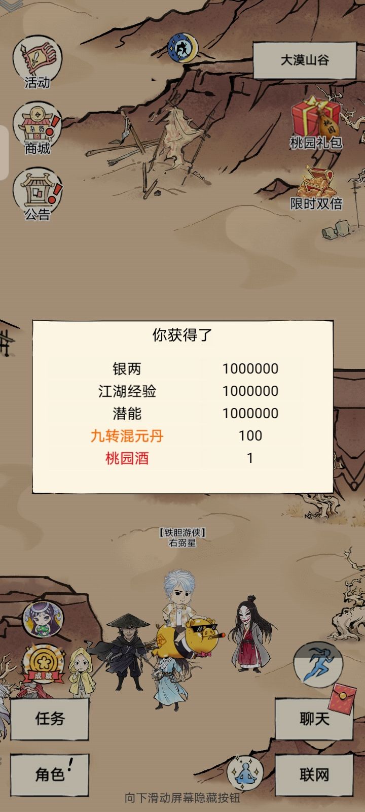 共获得400金,一个西域灵芝压包,若干九转,5个寒玉丹。